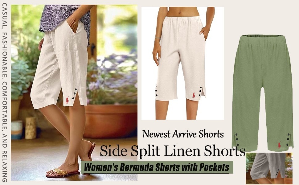 Perfect for a range of activities from outdoor adventures like hiking and camping to leisurely walks in the park, these cotton-rich linen short pants are an excellent gift choice for any fashion-forward woman who appreciates comfort and style.