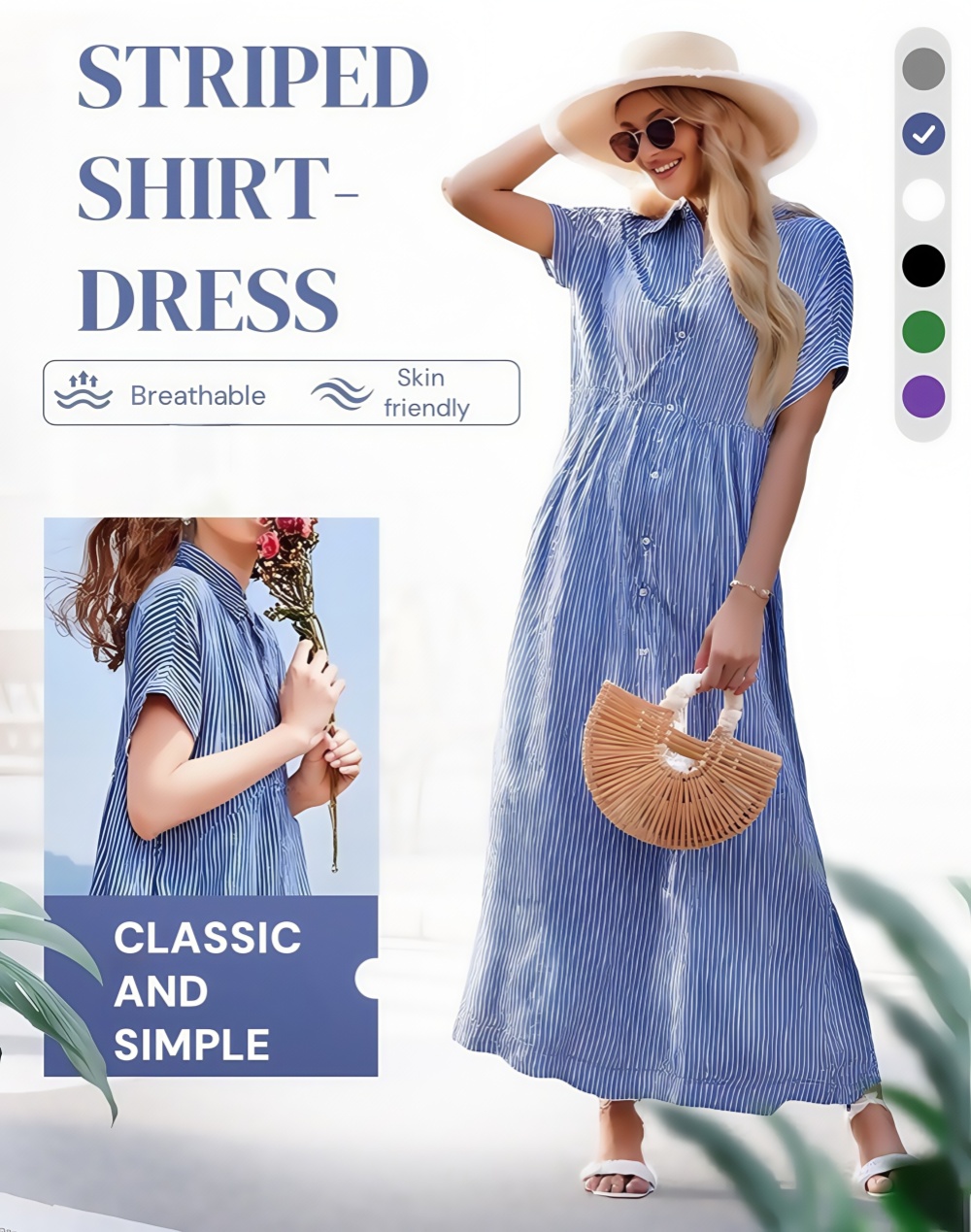 - Elegant Striped Print: Enhances the dress with a stylish and unique pattern.