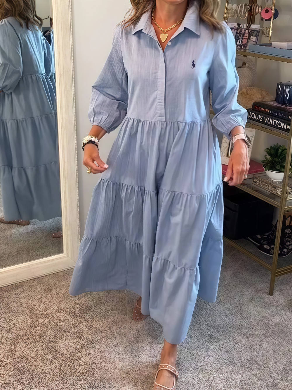 The Loose Cotton Linen Lapel Dress is designed for the modern woman who cares about sophistication and style. The elegant Maxi long dress is perfect for any occasion.