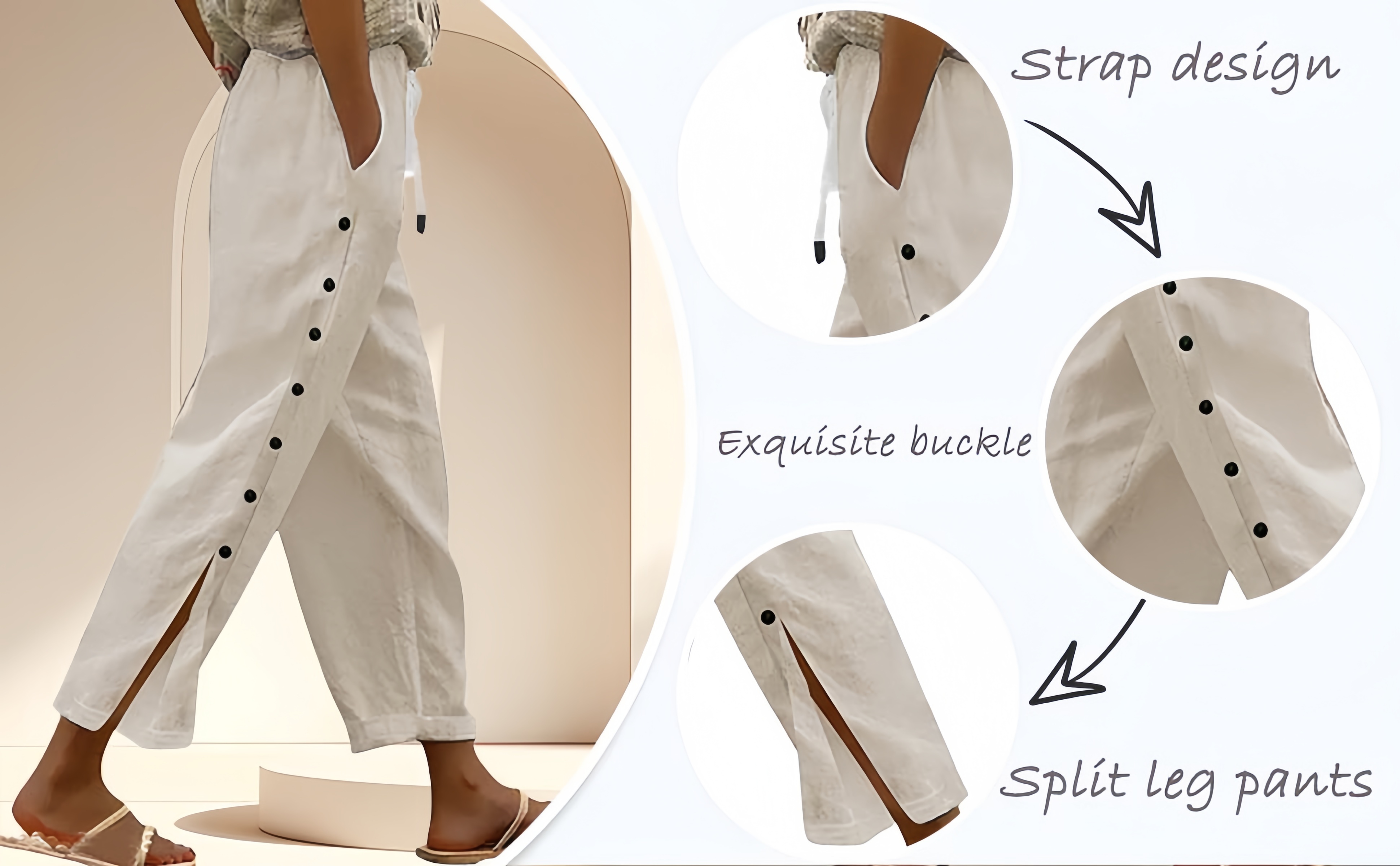 SIDE BUTTON FASHION DETAIL - The pants feature unique button decorations on the sides, adding visual layers and enhancing the overall fashion sense. These buttons not only serve as decorative elements, but also add a distinctive touch to the style.