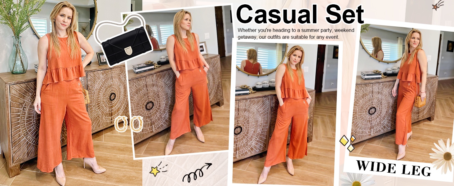 lf you're seeking a breezy yet polished look that transitions seamlessly fromday to night, this sleeveless pleated vest and wide-leg cropped pants suit isyour new go-to. Inspired by the modern woman who values comfort withoutcompromising on style, this set is a perfect blend of sophistication and ease.